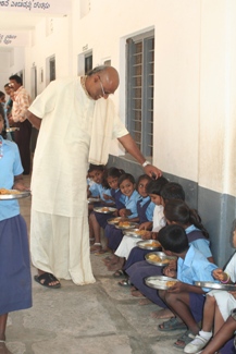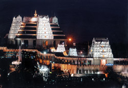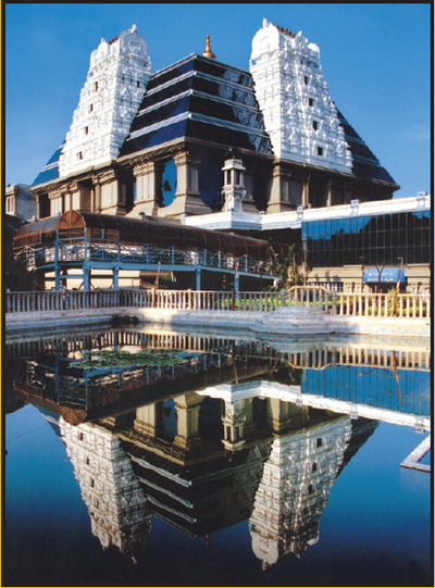 I am very enlivened and impreesed beyond my expectations after visiting the Bangalore temple for the last 4 days. When you first approach the temple and get your first glimpse it is just awe inspiring. No picture I’ve seen does it justice. The temple is situated on a hill and and be seen for great distanes all around. The combination of the ancient and modern design is breathtaking. Now I see why pilgrims come from all over India and line up by the thousands to see the temple. Srila Prabhupada’s voice is heard nonstop in different areas some chanting japa, others singing bhajans and giving lectures. The Deities are powerful because of the chaste worship by the ever-increasing devotees, all Prabhupada anugas.