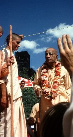 So everyone after Columbus, however great he may be, owes his regards to Columbus for opening the door to the New World, and Columbus is never obliged to any late-comers or new-comers. Like Columbus, Prabhupada set out from India and opened the door to the spiritual world for the whole world, and every transcendentalist thereafter is obliged to Prabhupada. Prabhupada is never obliged to those coming after him, however great they may appear as individuals. Neither is he obliged to his contemporaries. That is the unique position of Prabhupada as the acharya of the entire Gaudiya Vaishnava Sampradaya.