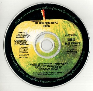 After recording the album we had to do a cover shoot. Paul McCartney was at the back doing the engineering with George Martin. He came out once to adjust some mikes and then came over to where I was sitting cross-legged on the floor, shaved-up wearing robes, and said “I saw it on the News you know Hairy Krishna! Hairy Krishna!” George flew down to the Woodstock – Isle of White in a Helicopter, with a copy of 45, and played it for 4 hours straight before the concert! So it was broadcasted on the news and they said “Hairy Krishna” because of all the long hairs. We were all chanting the Hare Krishna mantra for four hours on that ride!” Then he went back into the mixing room. After the session they all left except George and the rest of the devotees arrived to record the ‘B’ side of the “Hare Krishna Single” and “Prayers to the Spiritual Masters.”