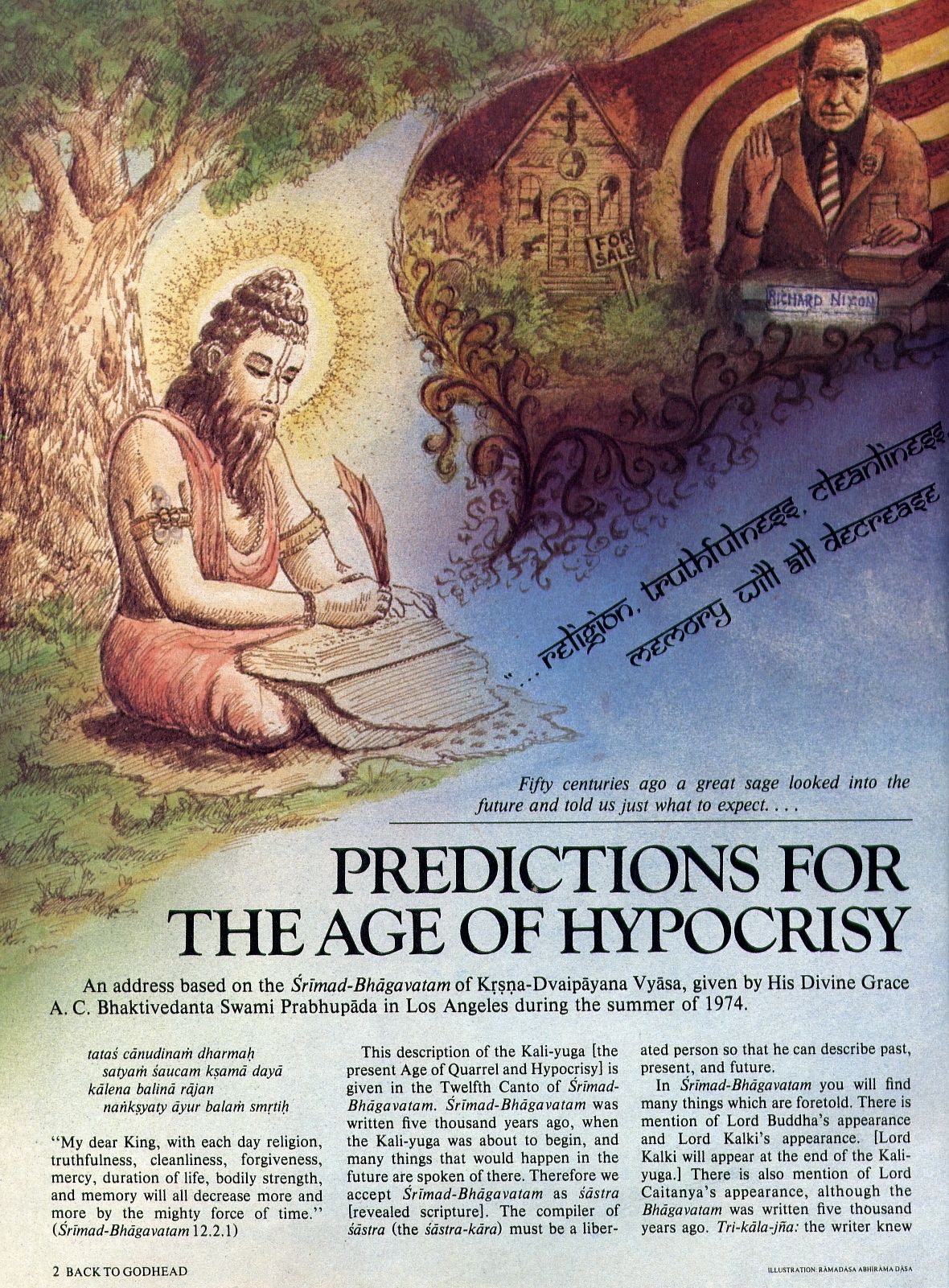 in A.C. Bhaktivedanta Swami Prabhupada, Back to Godhead, Kali Yuga Tags: A.C. Bhaktivedanta Swami Prabhupada, bhagavatam, chanting Hare Krishna, future, Hare Krishna, hypocrisy, kalau dasa-nidhe rajan, Kali-yuga, past, prediction, present, Srimad Bhagavatam