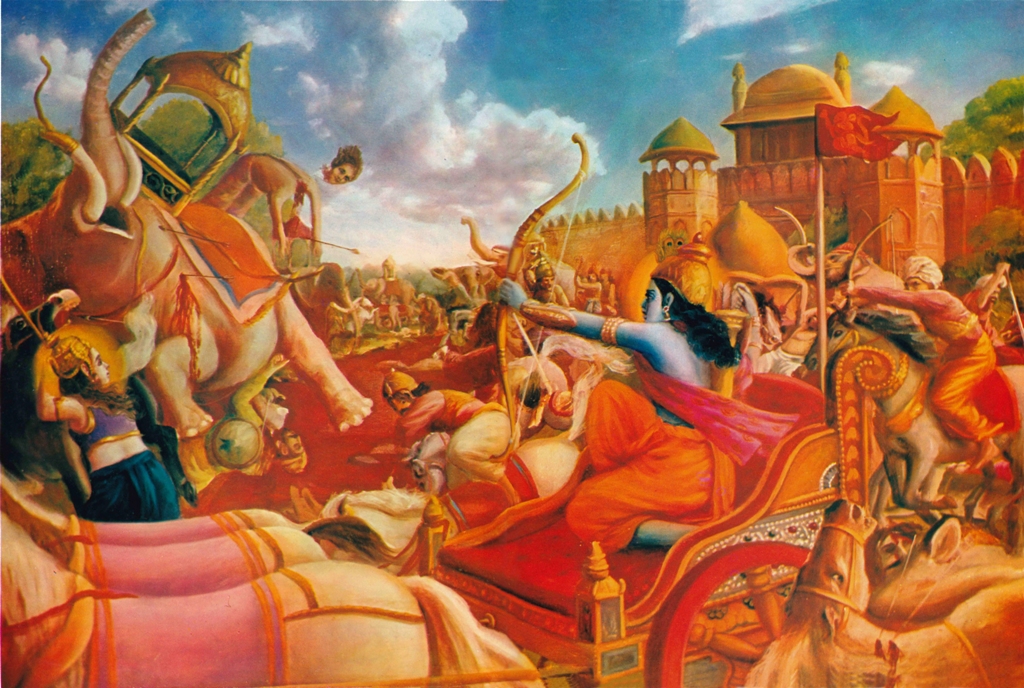 I often lament that as a child growing up my hero’s were fictional characters, like Flash Gordan and Superman, without any Krsna Consciousness. And I often think how fortunate are the children who grew up instead with stories from the Krsna Book, or the Mahabharata. With great battle scenes, real drama, and romance. Not just fictional stories but eternal pastimes of the Lord and His devotees. Here is one such example: