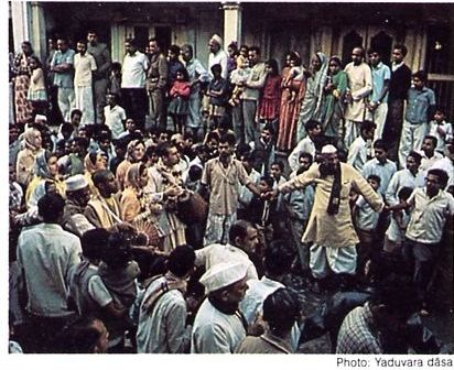 TAMALA KRSNA GOSVAMI: Yes, it’s a very good preaching field. It’s good because the people are still to some extent Krsna conscious here in India. Preaching here is not a question of teaching something completely new; it’s a question of reviving something which is not very dormant. We say that Krsna consciousness is the dormant God consciousness within everyone. But here it’s not quite as dormant. It’s just barely sleeping. You go anywhere and start chanting Hare Krsna, and right away people join in with the chanting. You don’t have to teach them these nonsectarian holy names of the Lord, because they already know how to chant them—Hare Krsna, Hare Krsna, Krsna Krsna, Hare Hare/ Hare Rama, Hare Rama, Rama Rama, Hare Hare.