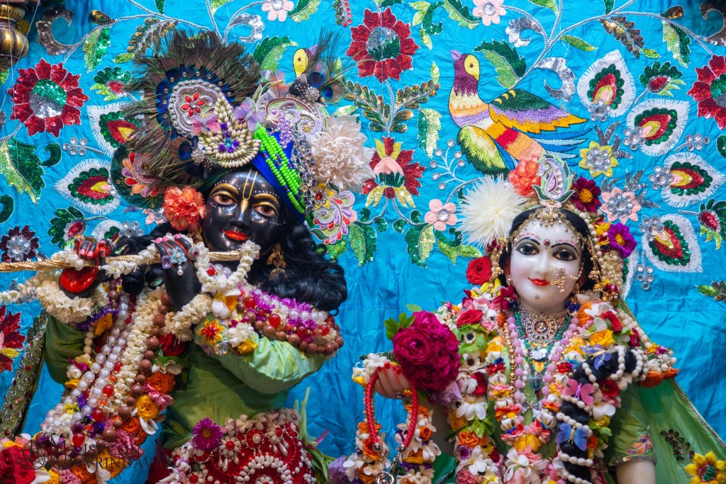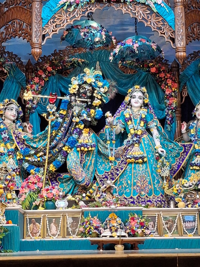 We are currently in Vrindavan, India, at the Krsna Balaram Mandir, with the most beautiful Radha Shyam. All the deities looked so gorgeous this morning, in their black outfits.