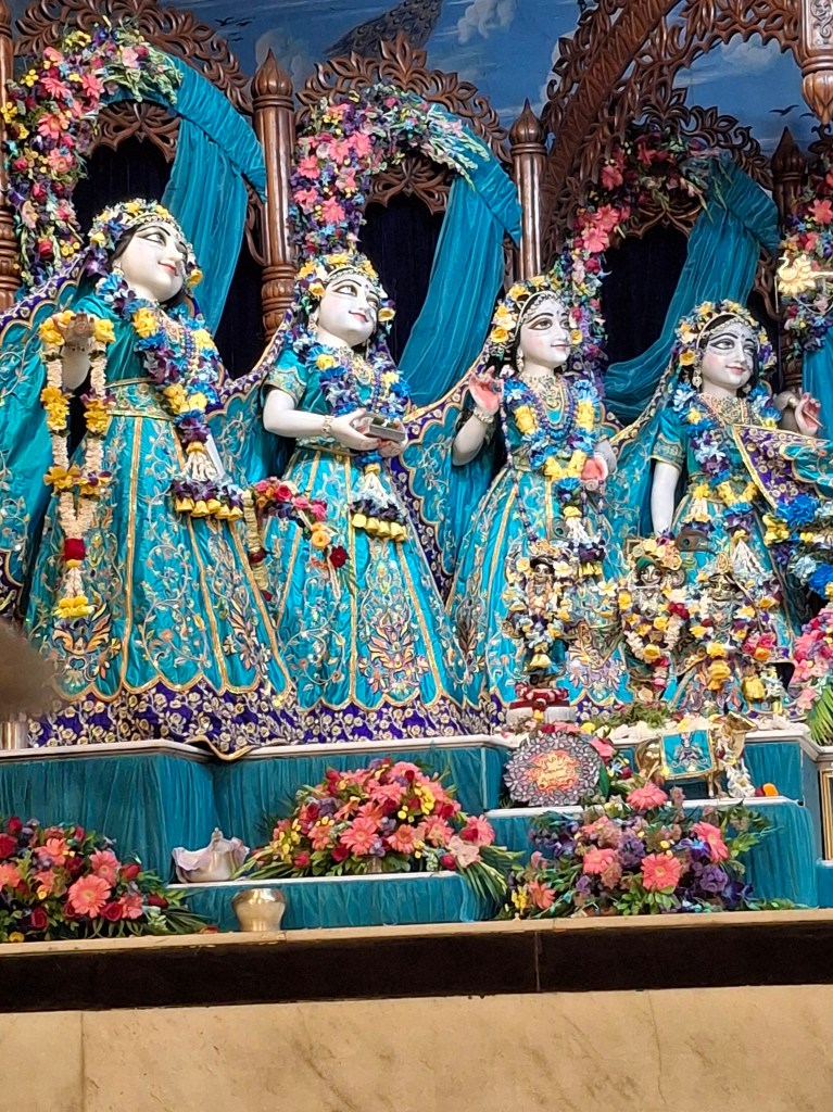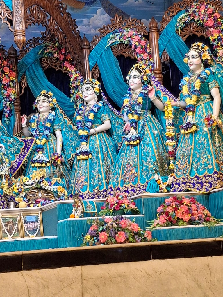 We spent the last week at the Sri Sri Radha Madhava Temple in Mayapur. It was an incredible week! Bathing Lord Caitanya Mahaprabhu on His Appearance Day, attending aroti at Srila Prabhupada’s Samadhi, Guru-puja at temple, etc. but the take away for me was the Radha Madhava altar. To see Radha and Krishna surrounded by the beautiful Ashtasakhi’s (the 8 principle gopis) was a sight to behold. And I wanted to know more about these beautiful personality’s.