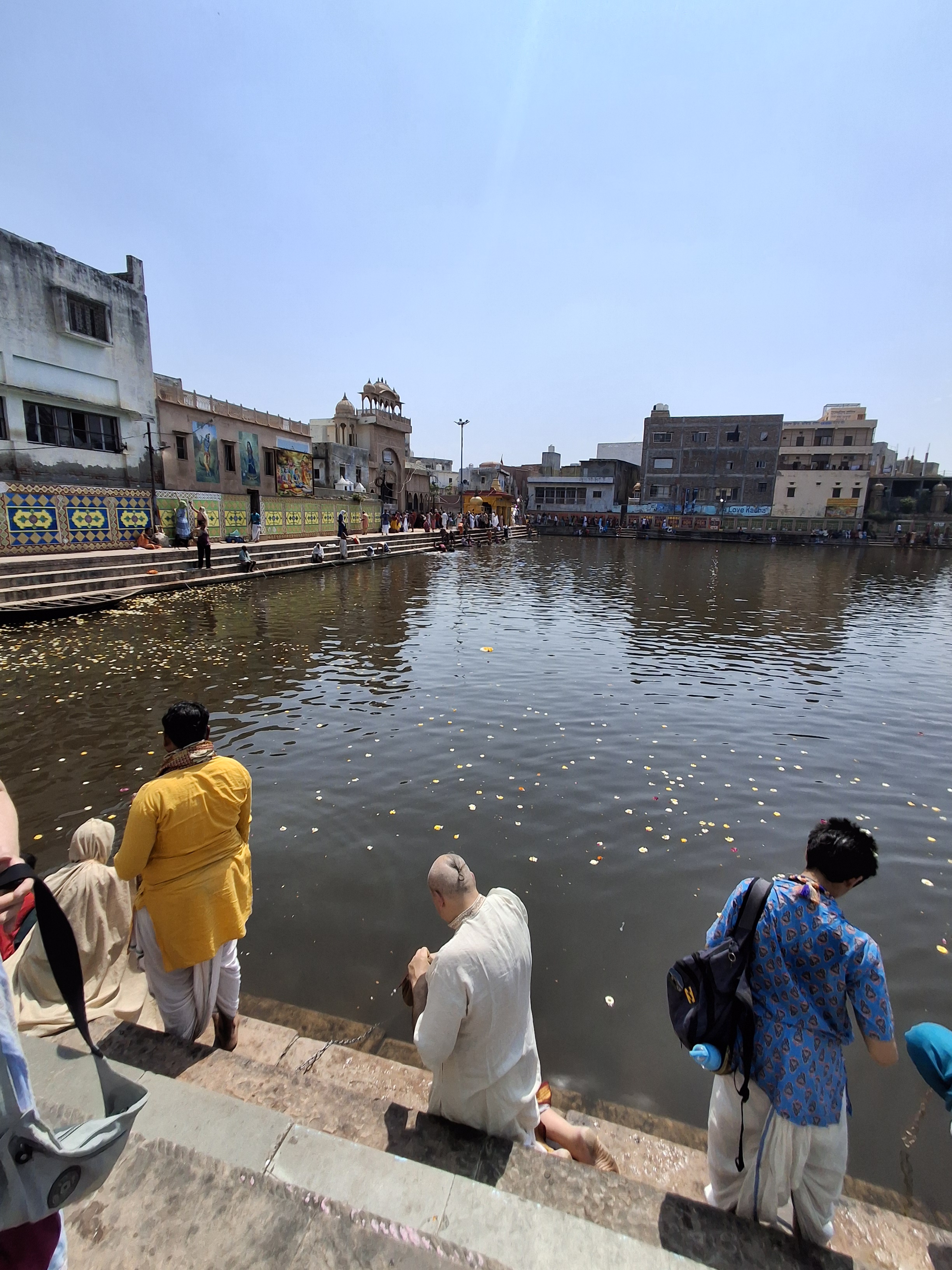 Today we visited Radha Kund, as well as many other places of pilgrimage in Vraja; the district of Vrindavan. We were greatly surprised at how everything around Krishna Balarama Mandir, has grown and changed. So much construction, so many more people, and worst, so many motorized vehicile’s. I took some pictures of Radha Kund today, which I will share at bottom of post.