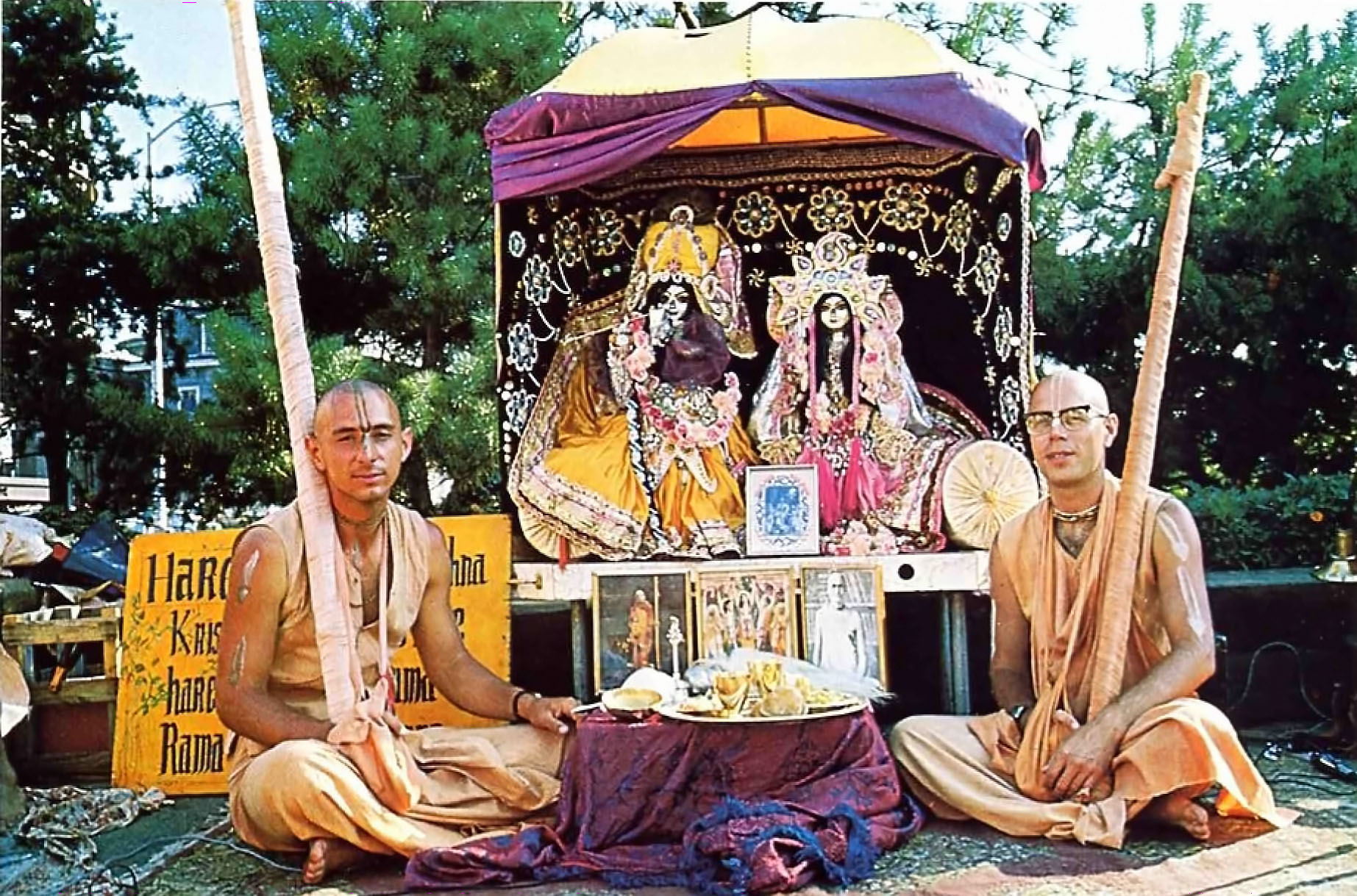 This month of Kartika or the month of Damodara, has always been very dear. It is probably because Radha Damodara were the first worshipable Radha Krishna deities I had the good fortune to serve. When I joined the Hare Krishna movement, I was assigned to the Radha Damodara Traveling Sankirtan Party (RDTSP). I traveled with the bus party for the first year of my devotional career, and when the bus party broke up, I was re-assigned to the Gita Nagari farm, where I was engaged for some time as a carpenter building the new temple for the Radha Damodara deities who reside there. I guess we always remember our first love. -V