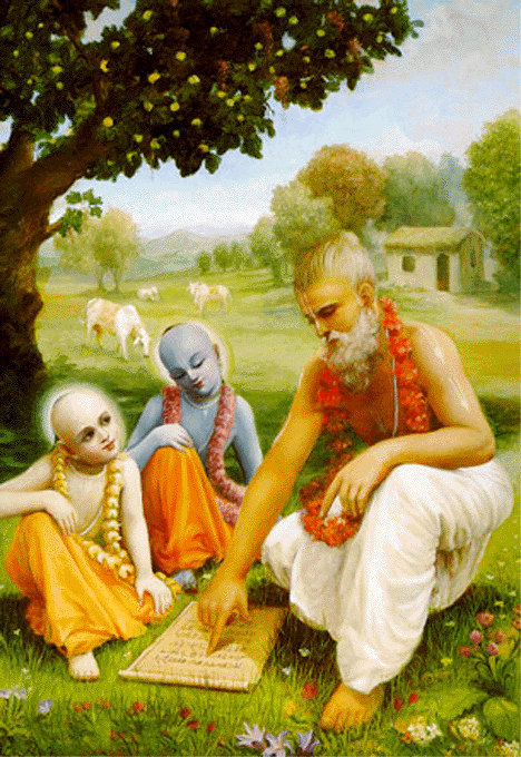 …So Kṛṣṇa and Balarāma, the Supreme Personality of Godhead, are the source of all kinds of knowledge, but because They were playing like ordinary human boys, They set the example so that everyone would receive knowledge from the right source. Thus They agreed to take knowledge from a spiritual master.