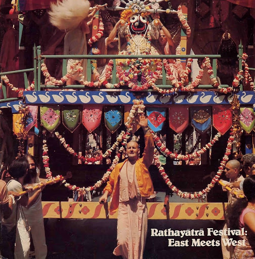 Jayananda: The first year, 1967, we just rented a flatbed truck and started out in the Haight-Ashbury district of San Francisco. We decorated the truck with flowers and put the Deities on the back, and the girls passed out fruit. A good crowd walked along with us at the beginning, and when we turned off Haight Street a smaller group of maybe fifty people came with us and we went all the way to the beach.