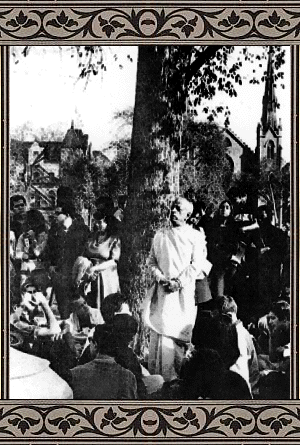 Srila Prabhupada: Yes, I chanted under a tree. (I think that a picture was also published in the East Village Other in a very big article.) Naturally, some boys came and joined me and began to dance. That was the beginning.