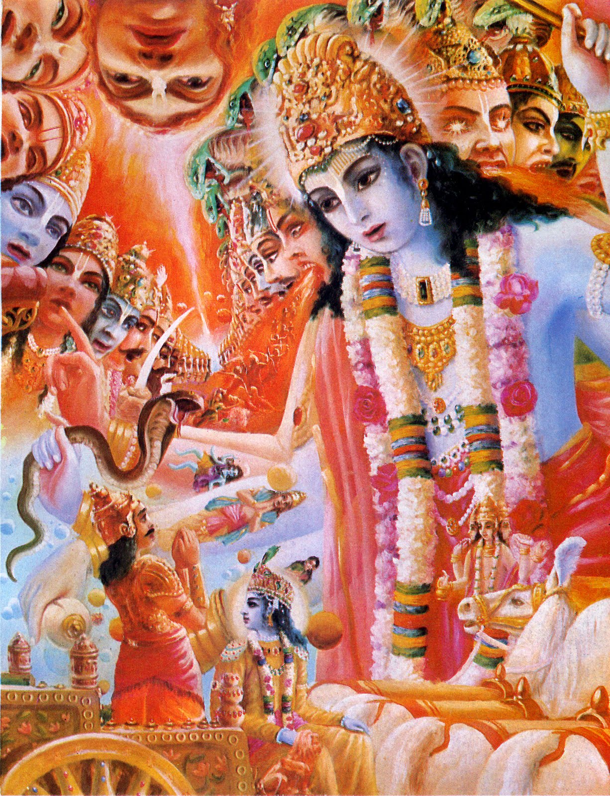 I worship Govinda, the primeval Lord, whose transcendental form is full of bliss, truth, substantiality and is thus full of the most dazzling splendor. Each of the limbs of that transcendental figure possesses in Himself, the full-fledged functions of all the organs, and eternally sees, maintains and manifests the infinite universes, both spiritual and mundane.