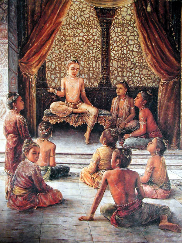 Prahlāda Mahārāja said: Hearing and chanting about the transcendental holy name, form, qualities, paraphernalia and pastimes of Lord Viṣṇu, remembering them, serving the lotus feet of the Lord, offering the Lord respectful worship with sixteen types of paraphernalia, offering prayers to the Lord, becoming His servant, considering the Lord one’s best friend, and surrendering everything unto Him (in other words, serving Him with the body, mind and words)—these nine processes are accepted as pure devotional service. One who has dedicated his life to the service of Kṛṣṇa through these nine methods should be understood to be the most learned person, for he has acquired complete knowledge. (SB 7.5.24-25)