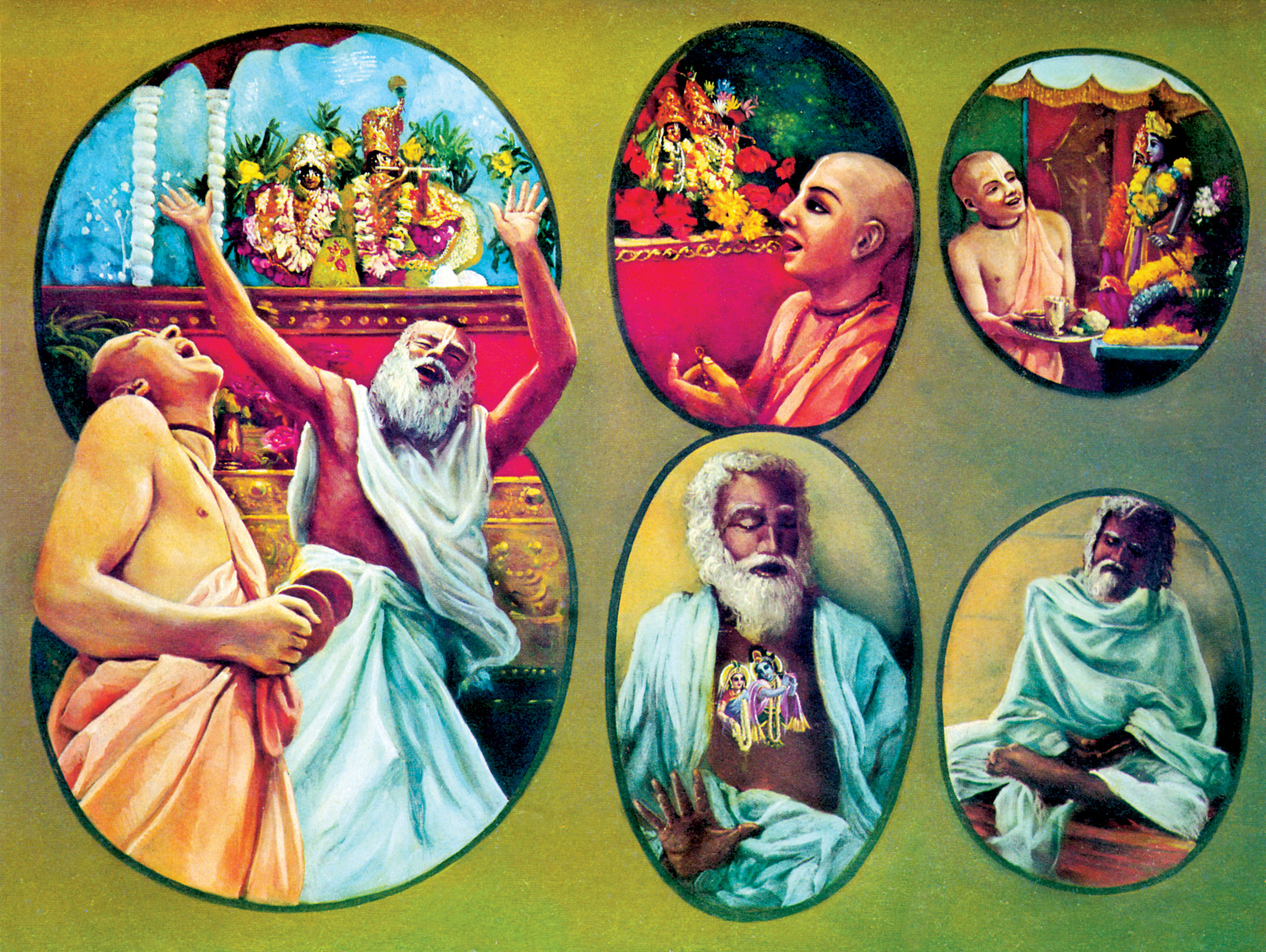 …Although Lord Caitanya was widely renowned as a scholar in His youth, He left only eight verses, called Śikṣāṣṭaka. These eight verses clearly reveal His mission and precepts. These supremely valuable prayers are translated herein.